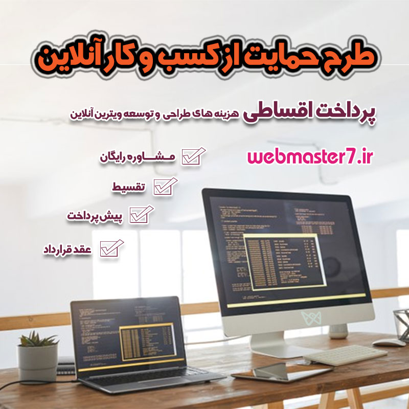 [vc_row][vc_column css=".vc_custom_1608233684945{background-position: center !important;background-repeat: no-repeat !important;background-size: cover !important;}"][vc_single_image image="69367" img_size="full" alignment="center"][vc_column_text] ___ وبمسترهفت پیشرو در ارائه راهکارهای تجارت الکترونیک ___ [/vc_column_text][/vc_column][/vc_row][vc_row][vc_column][vc_column_text] طراحی اقساطی...